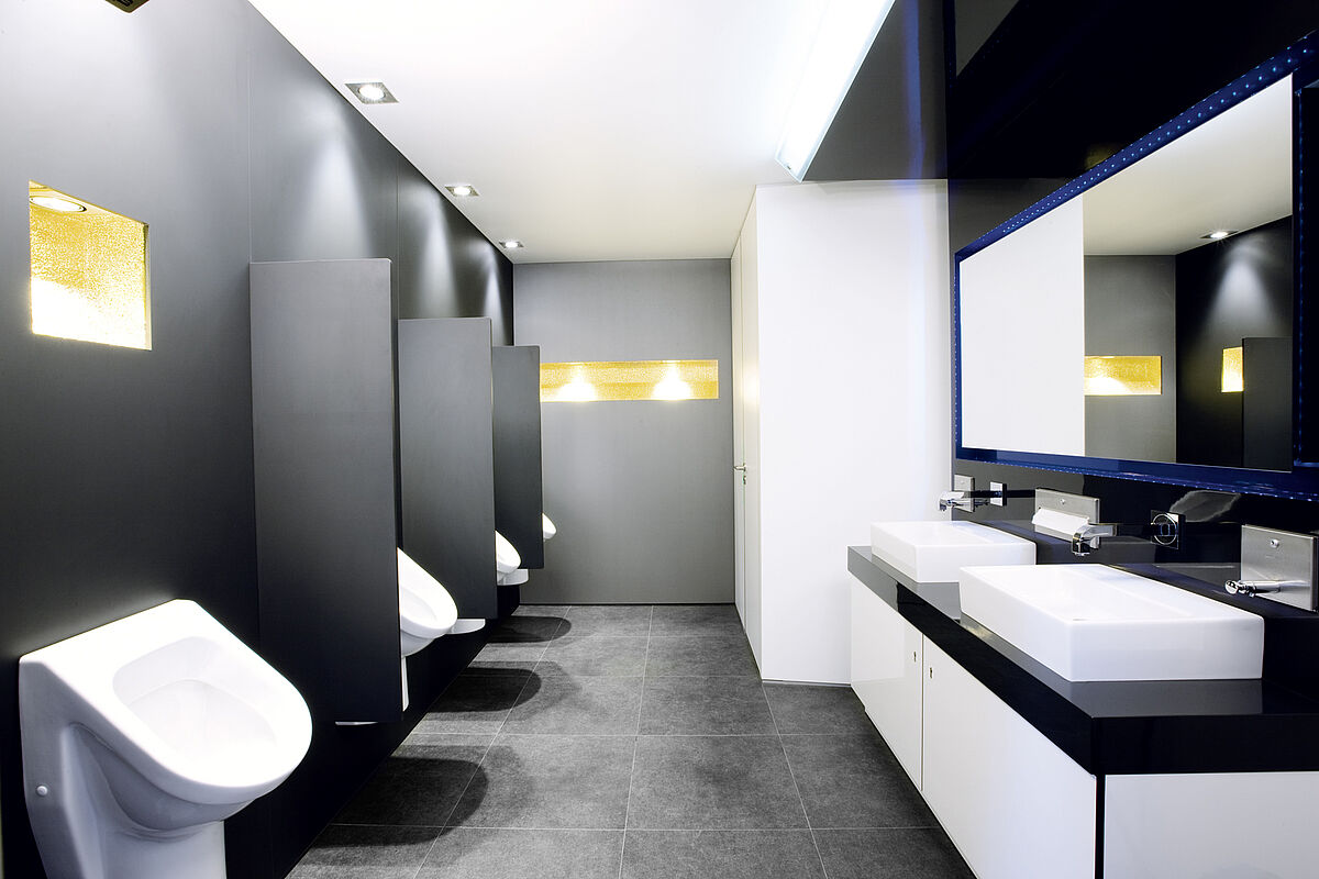 With its high-tech equipment and luxurious design, the TOI TOI® Superior Line men's sanitary container represents a new dimension in mobile sanitary modules. The bathroom for him is very elegant in the colors black, white and gray and has a clear and simple design language.The focus is on functionality: in combination with high-quality materials, this results in a convincing concept. Depending on the area, the sophisticated lighting design uses functional or ambient light. Underfloor heating, air conditioning, an aromatization system and a BOSE sound system ensure a pleasant ambience.