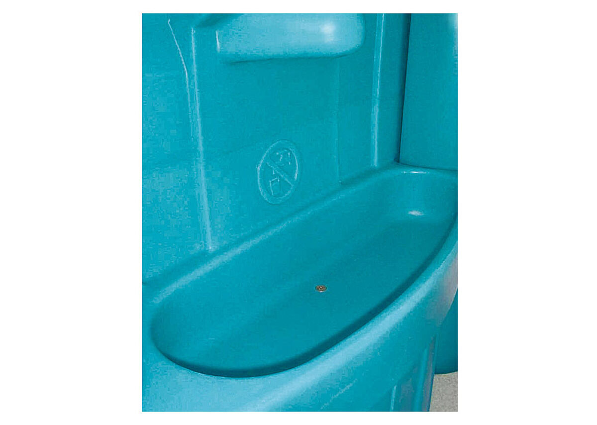 In addition to the WC and urinal, the equipment includes an extra-large washbasin. The TOI® WATER optimally meets the very high hygiene requirements on the construction site with its particularly large wash basin, where even the entire forearm can be washed. The TOI® WATER thus ensures the highest level of employee protection. The equipment package is rounded off by a 60-liter water supply with a stable foot pump, a soap dispenser and a paper towel dispenser. To save space, the system is integrated into the side wall. Robust, light, and appealing, these facilities are high quality throughout.