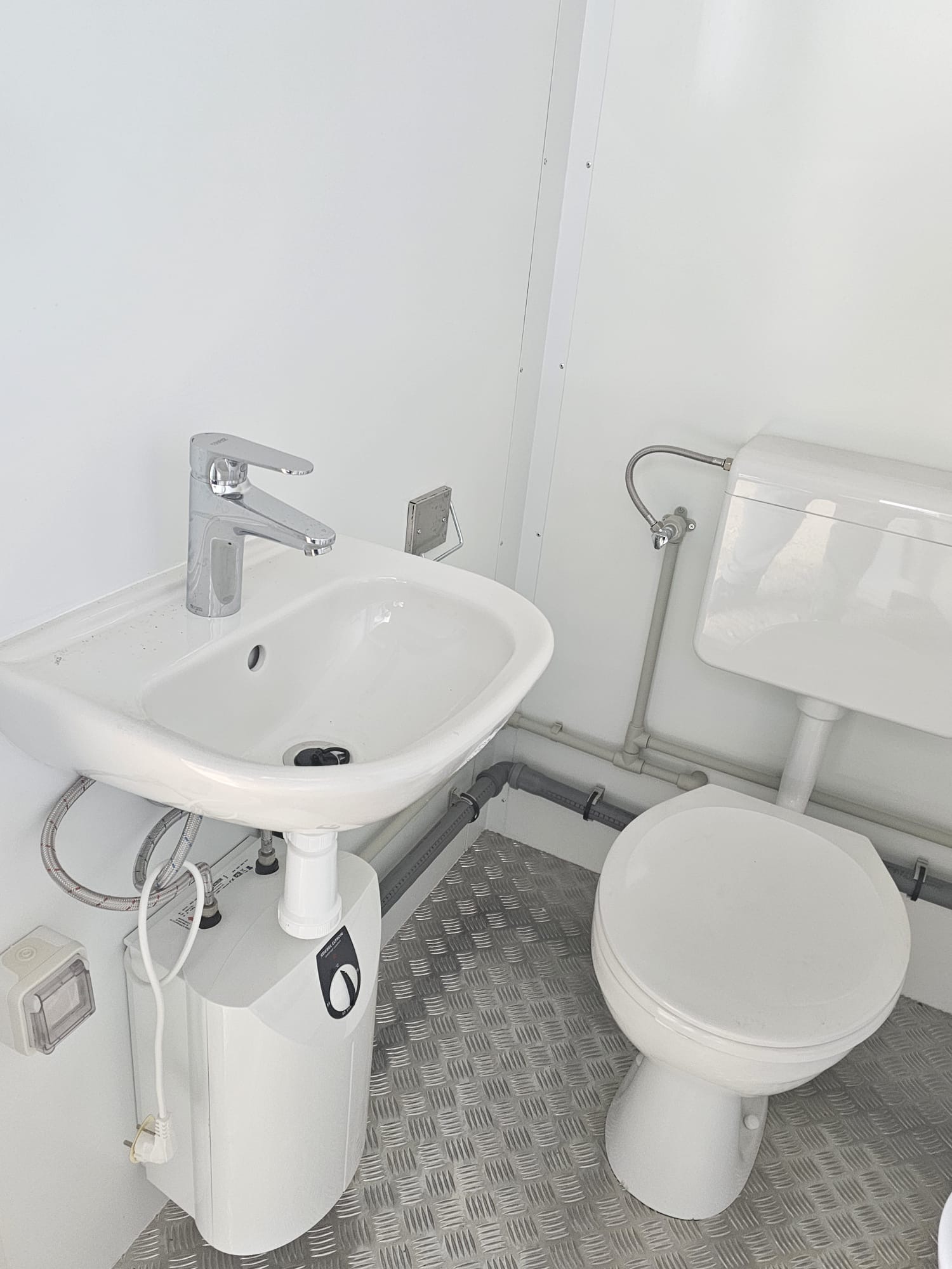 Optionally, clean water and wastewater tanks can be supplied with the module to turn it into a standalone solution. Only a standard 230V electrical connection is needed to operate the lights and heating.
