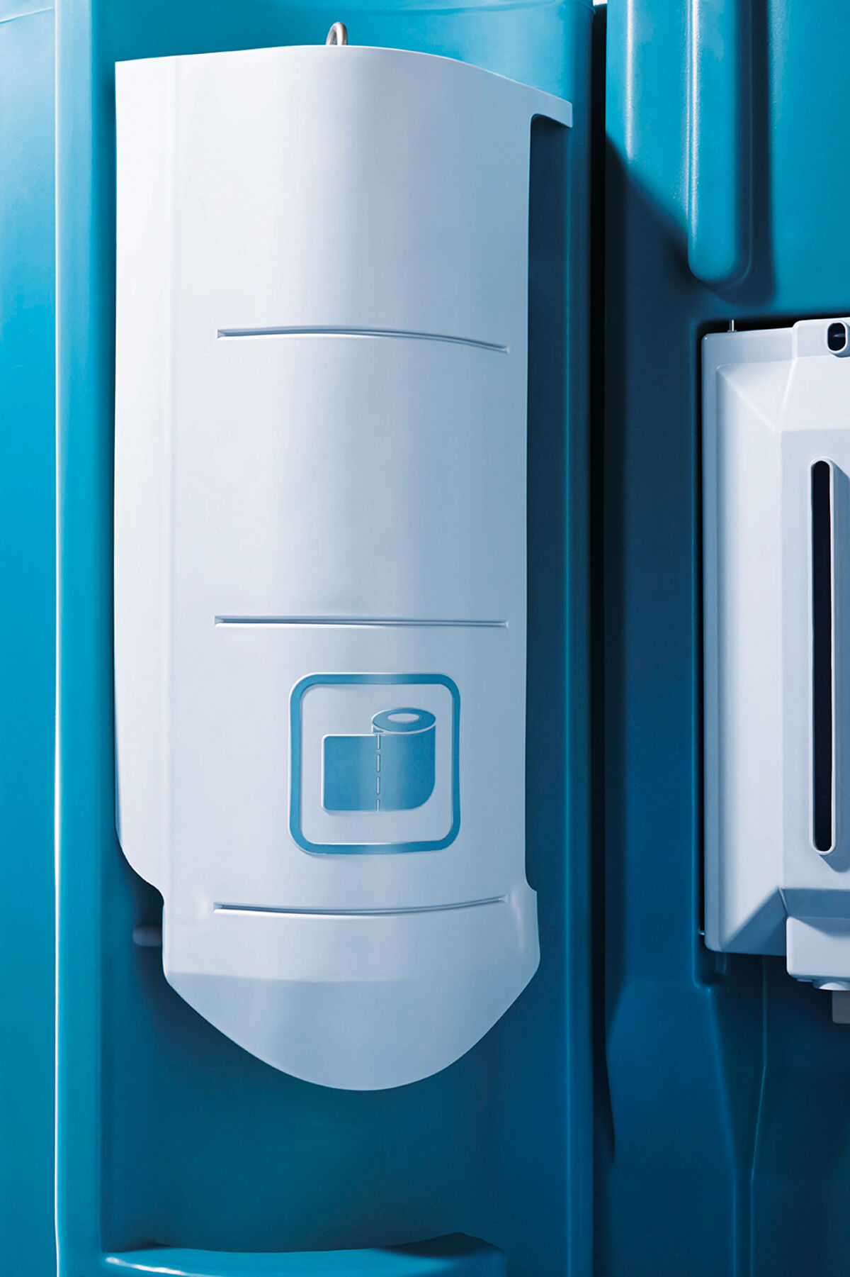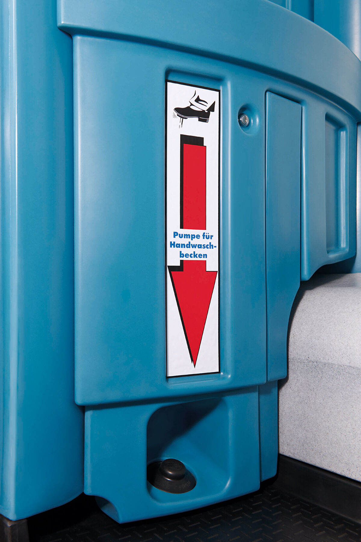 Móvel e completo no seu interior. Para além do WC e do urinário, o equipamento inclui um lavatório extragrande. O TOI® WATER UP satisfaz de forma ótima os elevados requisitos de sanidade na obra, com o seu lavatório especialmente grande, onde é possível lavar até o antebraço inteiro. O TOI® WATER UP garante assim o máximo nível de proteção dos trabalhadores. O pacote de equipamento completa-se com um depósito de água de 60 litros com bomba de pé estável, um doseador de sabão e um doseador de toalhas de papel. A higiene das mãos é garantida com o doseador adicional de desinfeção das mãos.